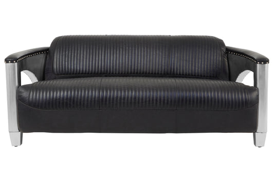 The Masters Sofa, 3 or 2 Seater, Black Leather on Silver Metal, The Ultimate Man Cave Chair