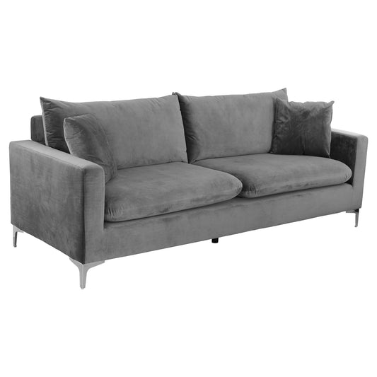 Classic Jessie Grey 3 Seater Sofa, Grey Fabric, Chrome Legs, Folding Headrest