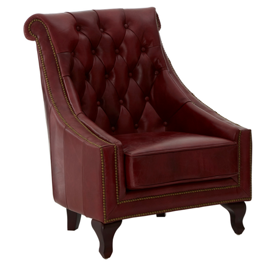 The Red Ray Leather Armchair, Walnut Wood Legs