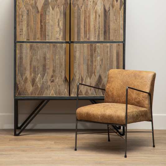 The Honcho Lounge Chair, Brown Leather, Iron Legs